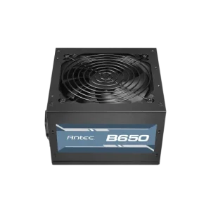 The Antec B Series B650 650W 80+ Bronze Non-Modular Power Supply offers reliable performance while incorporating crucial safety and thermal control features. The Antec B Series B650 650W Power Supply has a total output capacity of 650 watts and provides steady power for gaming and productivity settings using mid-range graphics cards and processors. It has an 80 Plus Bronze efficiency rating, which means less power loss and lower electricity bills due to less wasted energy. The Antec B Series B650 650W 80+ Bronze Power Supply features a 120mm silent fan that operates quietly while delivering maximum cooling performance. Antec’s unique Thermal Manager technology intelligently adjusts fan speed based on system temperature to achieve optimal heat and noise levels. It includes active power factor correction (APFC), which improves power efficiency and lowers power distortion for more consistent performance. Flat wires are included in the Antec B Series B650 650W 80+ Bronze Non-Modular Power Supply, allowing for easier cable routing and improved airflow within the chassis. As a non-modular design, the Antec B Series B650 650W 80+ Bronze Non-Modular Power Supply includes all necessary cables pre-attached, making it suitable for customers who prefer simple installation without the need for customization. CircuitShield, a set of industrial-grade protections including Over Power Protection (OPP), Over Voltage Protection (OVP), Under Voltage Protection (UVP), and Short Circuit Protection (SCP), shields the power supply and its attached components against electrical faults.