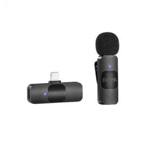 The BOYA BY-V series is a professional wireless microphone system designed for on-the-go recording applications such as vlogging, podcasting, and live streaming. The BOYA BY-V1 comes with a transmitter and a receiver, the latter of which has an MFi-certified Lightning output designed exclusively for Apple iOS devices. It provides a high-quality audio solution at a low cost, making it more accessible to a wider range of customers.