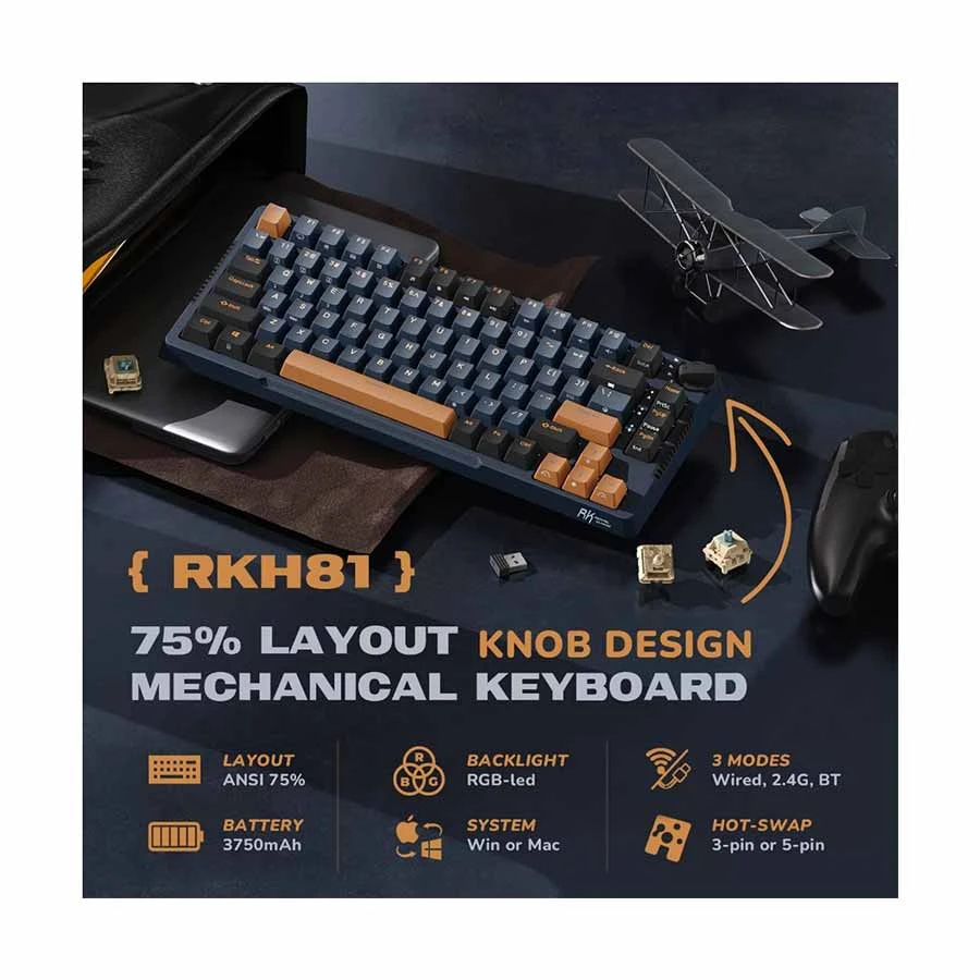 Royal Kludge RK H81 RGB Tri-Mode Hot-Swappable Brown Switch Mechanical Keyboard